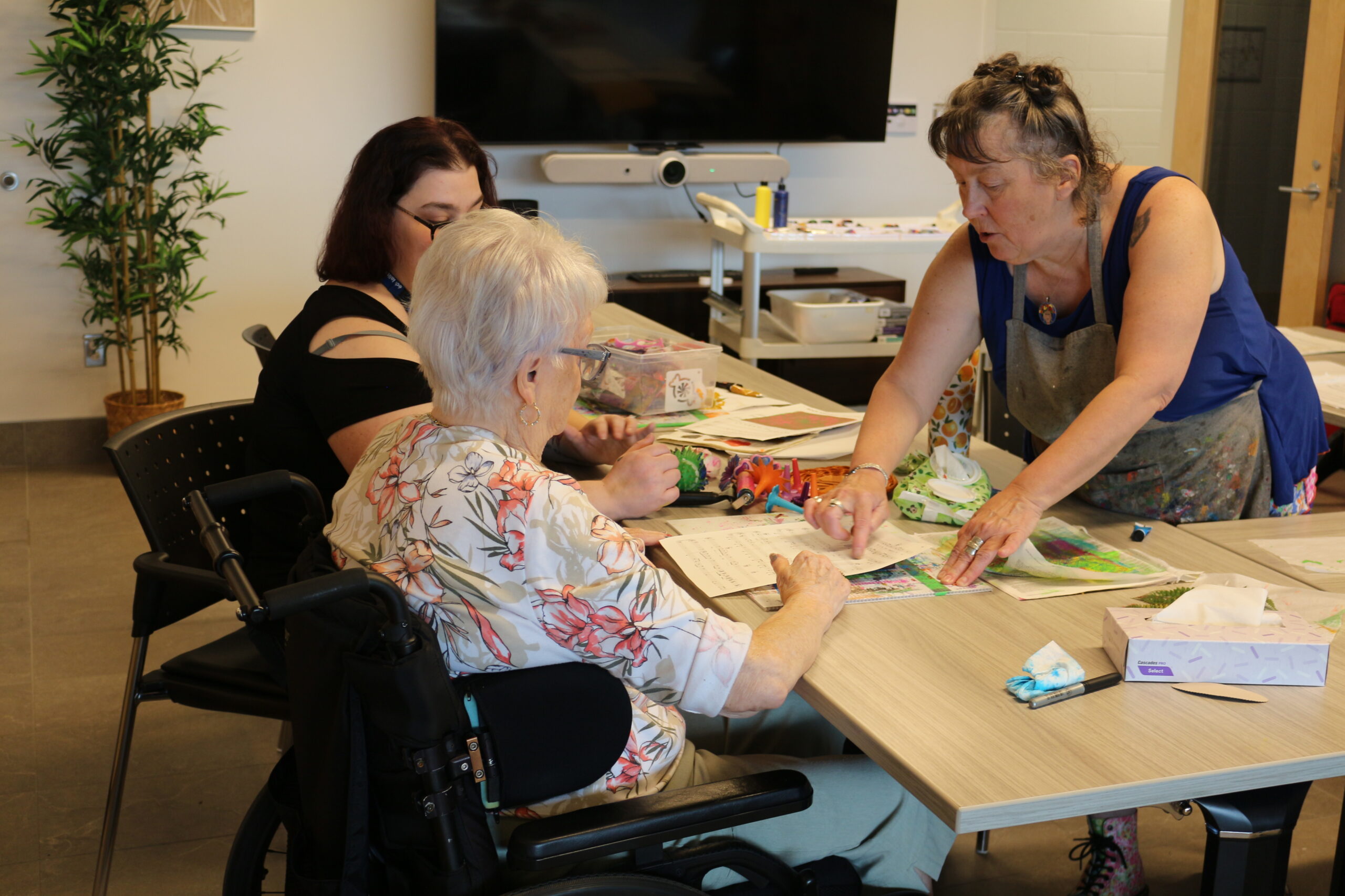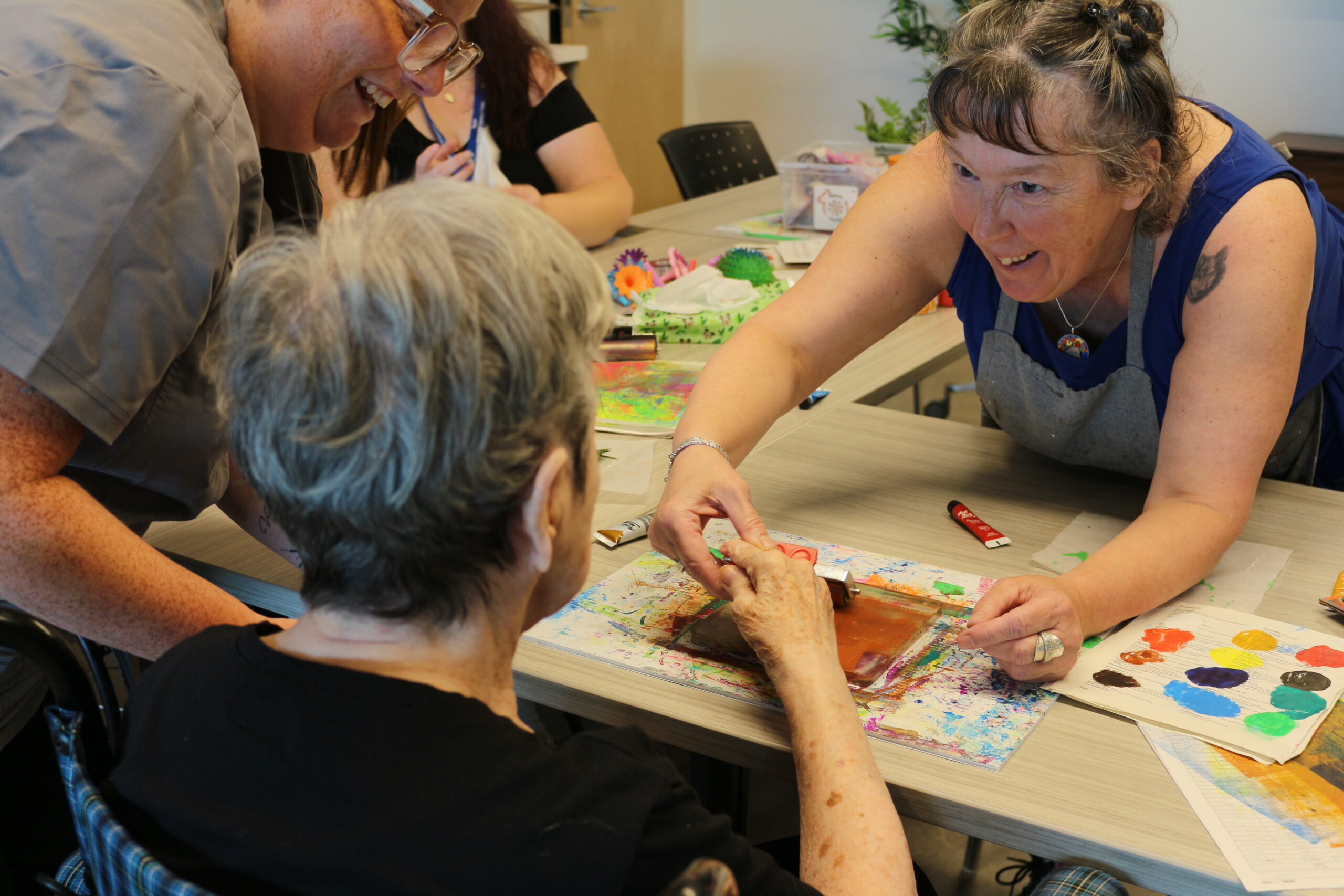 Sur la photo, France-Anne Blanchet en compagnie de 3 particpantes du CHSLD Saint-Alexandre : Beverley Penhale, Colette Cyr et Hélène Gamache.