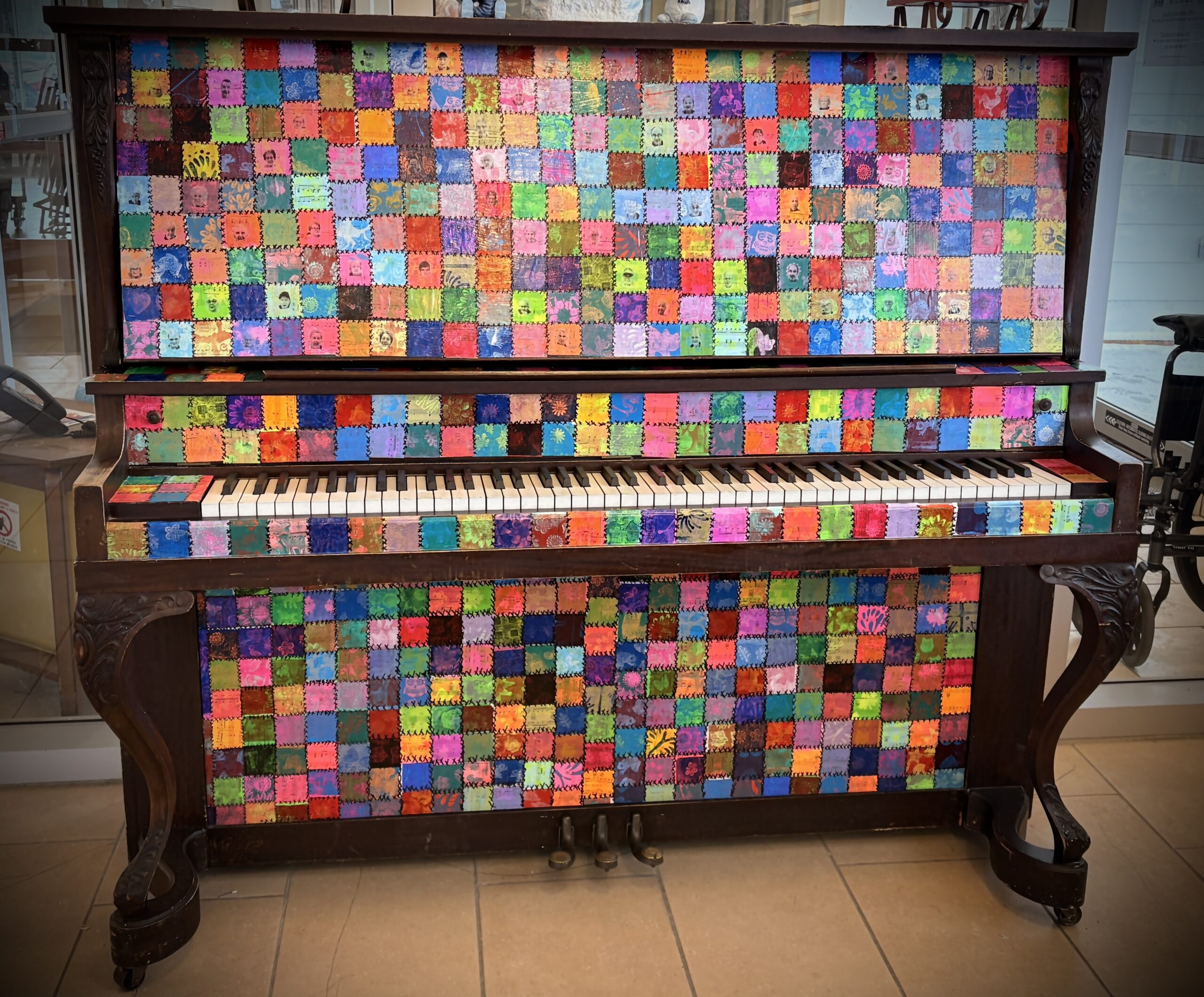 Financé par l’entente de développement culturel 2025-2027 de la MRC des Appalaches avec le gouvernement du Québec et de Desjardins, le projet Tissés serrés visait à créer, dans les CHSLD et MDA du territoire, une œuvre collective par milieu de vie. Mon objectif personnel était de favoriser la participation de l’ensemble des résidents même ceux dont la situation demande un effort d’adaptation de ma part. Je souhaitais aussi la participation du personnel et des bénévoles.